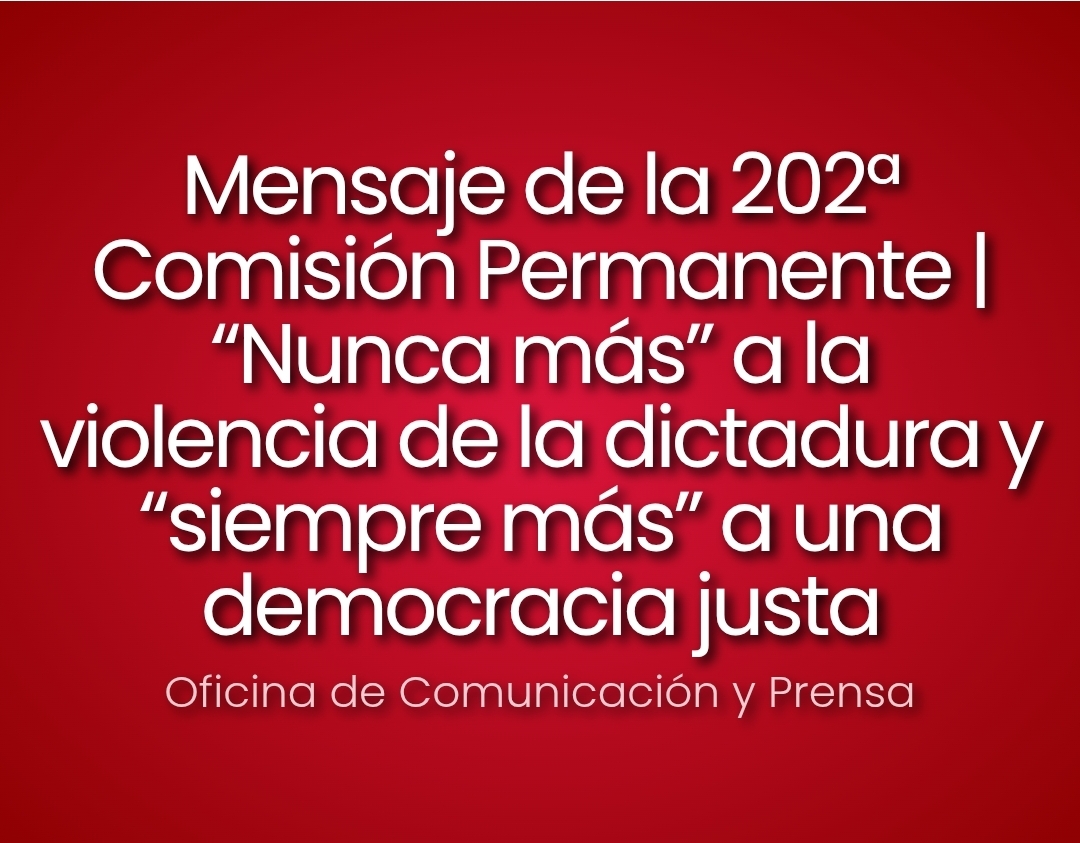 Mensaje de la 202ª Comisión Permanente | “Nunca más” a la violencia de la dictadura y “siempre más” a una democracia justa