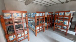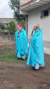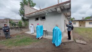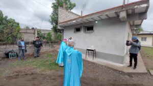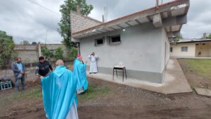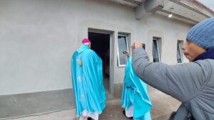 ANTES DE DESCENDER  AL LUGAR DE LA MISA SE HIZO UN ALTO PARA INAUGURAR DOS SALONES DORMITORIOS PARA PEREGRINOS Y GRUPOS QUE DESEEN HACER RETIRO ESPIRITUAL EN EL SANTUARIO.