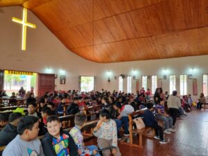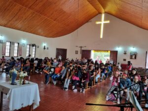 En este contexto el sábado 20 se celebró también la Misa para los niños de Catequesis y al finalizar la misma se realizó la batucada anunciando que se acerca la venida del Espíritu Santo.